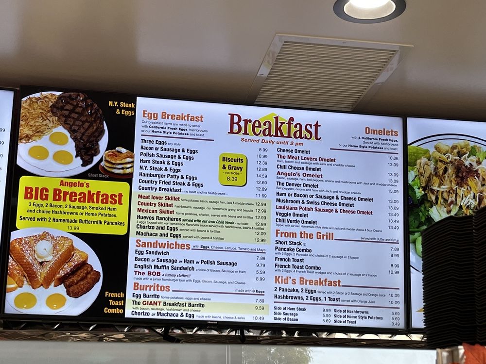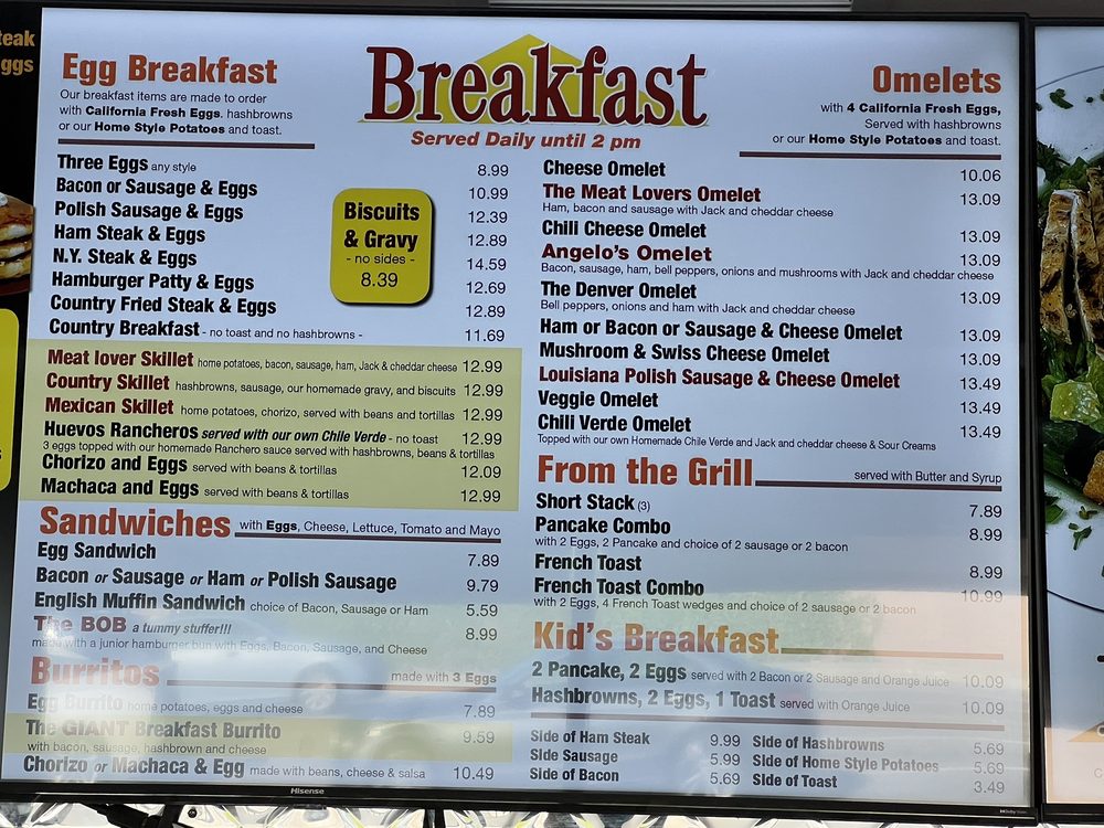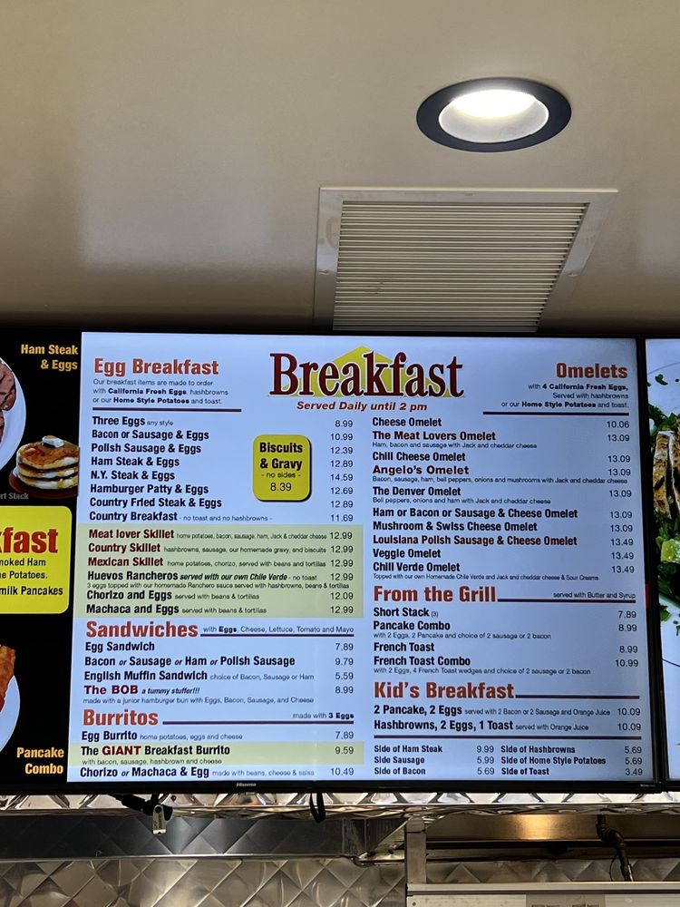 Located in Lake Forest, CA, Angelo’s Burgers offers a diverse menu of breakfast, burgers, and Mexican dishes. The restaurant provides delivery, takeout, and outdoor seating options. Customers rave about the generous portion sizes and fresh, delicious food. The Big Breakfast Plate, Chicken Tenders, and Pastrami Cheeseburger are standout items. The diner-style atmosphere and attentive staff add to the welcoming experience. With options like the Giant Breakfast Burrito, Chorizo Breakfast Burrito, and Machaca Breakfast Burrito, there is something for everyone to enjoy. Customers also recommend trying the red and green salsa condiments for an extra kick. If you're in the neighborhood, Angelo’s Burgers is a must-visit spot for a satisfying meal.